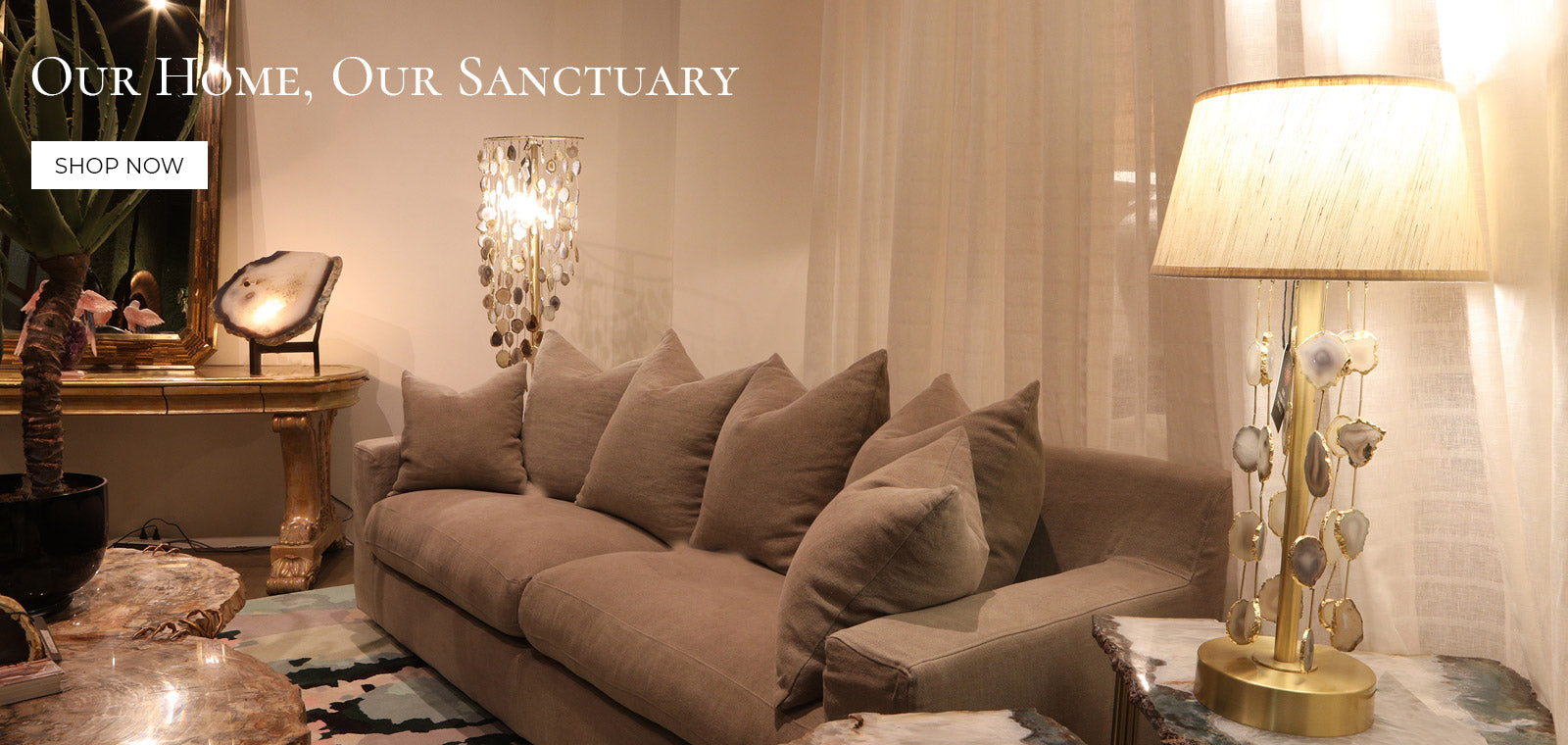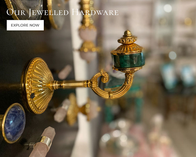 Rich in tradition yet contemporary in style, these pieces epitomize grandeur, yet seamlessly fit into spaces. With the beautiful array of semi precious stone colors, we surely create "jewelry for the home”